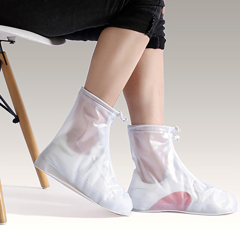 Được làm bằng chất liệu PVC Trong mờ, miệng lớn giúp tháo/lắp dễ dàng, khoá kéo và dây rút giúp cố định bao giày chắc chắn, không có kẽ hở để nước vào, mang lại cảm giác rất dễ chịu và thoải mái hệt như khi mang giày.