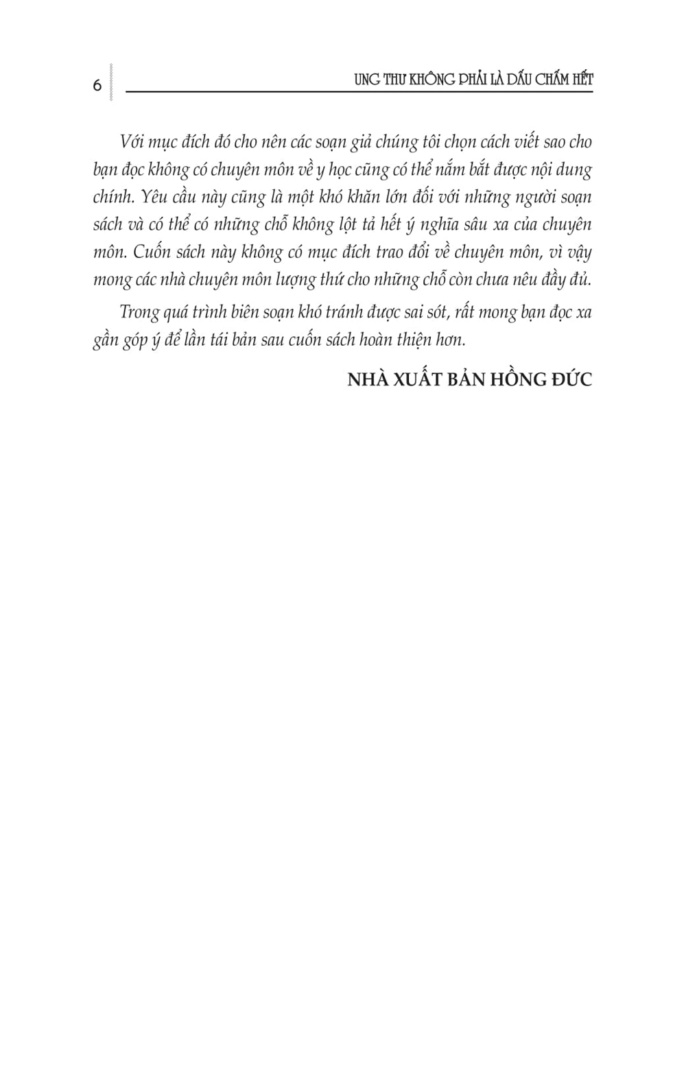 Bộ sách Ung thư không phải là dấu chấm hết gồm 5 quyển. Mỗi quyển là một sự tìm hiểu mỗi chứng bệnh ung thư khác nhau: Gan, Phổi, Thực quản, Đại tràng, tuyến vú;
