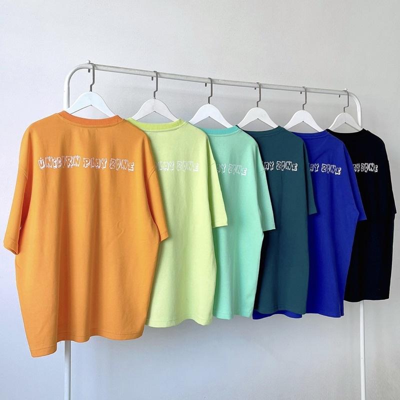 - Chi tiết logo silicone họa tiết Unicorn babe độc quyền từ UPZ studio trên ngực áo, mặt lưng áo in UNICORN PLAY ZONE.