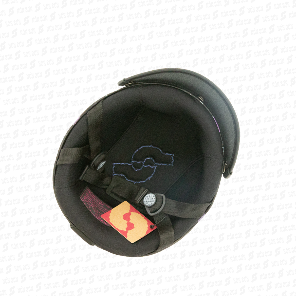 • Phần logo NÓN SƠN được gắn trên vỏ nón bảo hiểm Nón Sơn được làm từ da thật.