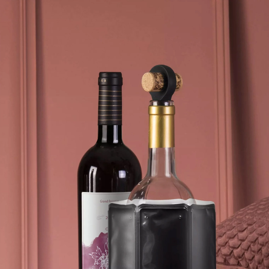 The Original Vacu Vin Wine Saver with 2 Vacuum Stoppers – Black