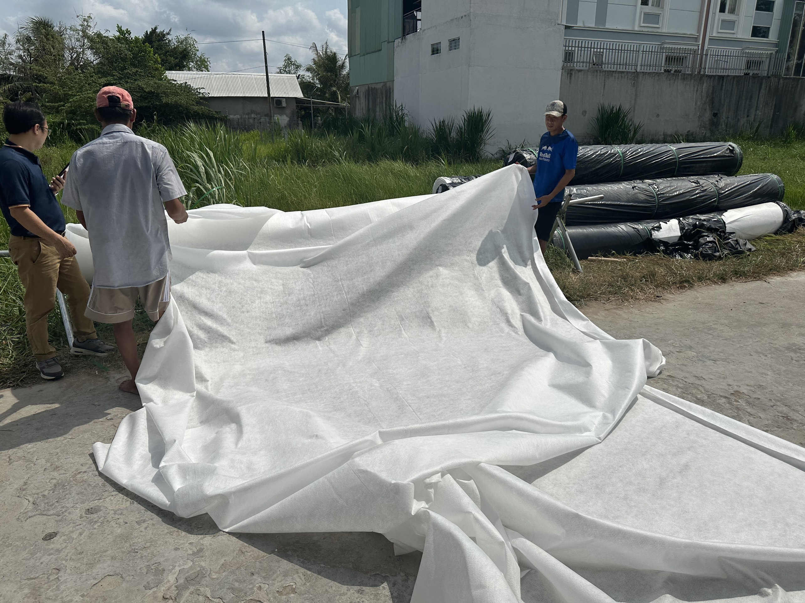 Vải địa kỹ thuật không dệt Khổ 100m2 , chiều Ngang 4m chiều dài 25m , khổ 4mx25m Vải địa kỹ thuật không dệt Vải địa kỹ thuật không dệt của SPI Sài Gòn được