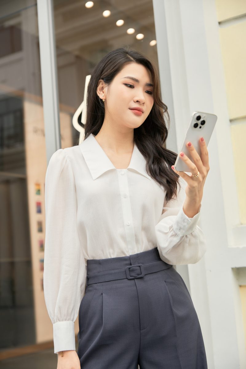 Mix thêm chiếc áo sơ mi tay phồng nữ tính là Quý cô đã có ngay outfit mới cho các buổi họp hay gặp gỡ đối tác.