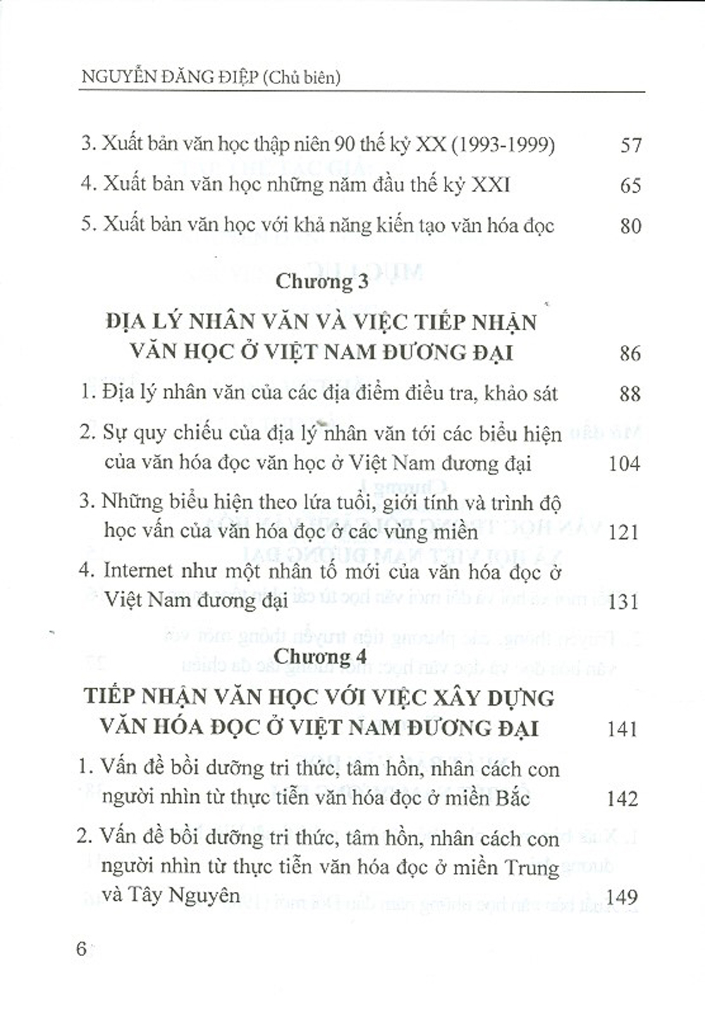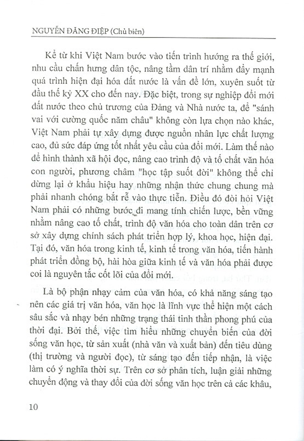 Nghiên cứu về văn hóa đọc và thực trạng đọc văn ở Việt Nam từ Đổi mới (1986) đến nay trên cơ sở khảo sát thực địa và tham chiếu những lý thuyết hiện đại liên quan đến văn hóa đọc là một nhiệm vụ quan trọng. Để nhận diện văn hóa đọc và đọc văn học ở nước ta trong giai đoạn giao thời cuối thế kỷ XX đầu thế kỷ XXI, Nhà xuất bản Khoa học xã hội đã xuất bản cuốn “Văn hóa đọc ở Việt Nam hiện nay (từ thực tiễn tiếp nhận văn học)”, do Nguyễn Đăng Điệp làm chủ biên. Cuốn sách được thực hiện theo hai hướng tiếp cận: Thu thập thông tin định lượng (bằng bảng hỏi); thu thập và xử lý thông tin định tính (bằng việc tham khảo dữ liệu thứ cấp và quan sát tham dự). Cuốn sách nghiên cứu về thực trạng đọc văn học ở Việt Nam như điểm xuất phát để lý giải về văn hóa đọc, bước đầu cắt nghĩa về trạng thái tinh thần xã hội đương đại, tác giả cuốn sách đã đề xuất xuất những giải pháp, kiến nghị nhằm thúc đẩy văn hóa đọc và hình thành xã hội đọc ở nước ta một cách đúng đắn, lành mạnh.