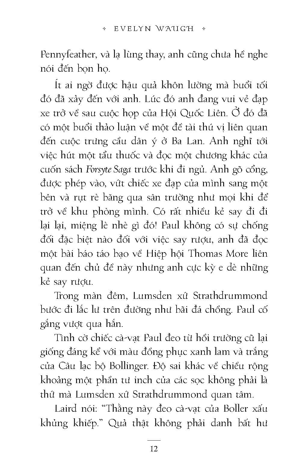 Các đồng nghiệp của Paul là một nhóm những kẻ lạc thời, trong đó có ông mục sư già Prendy bị nỗi hoài nghi về Đấng cứu thế giày vò và gã đồng nghiệp Captain Grimes thường xuyên bị “tai bay vạ gió”. Tại Trường Llanabba, Paul bị thu hút bởi Quý bà Margot Beste-Chetwynde, một góa phụ giàu có, đồng thời là mẹ của một trong những học sinh do anh dạy dỗ. Paul vỡ òa niềm vui sướng khi được bà Margot Beste-Chetwynde thuê làm gia sư cho con trai trong kỳ nghỉ. Chuyển đến sống tại một căn biệt thự sang trọng, Paul dần dà nhận ra thói quen sống phóng túng của bà phụ huynh này.