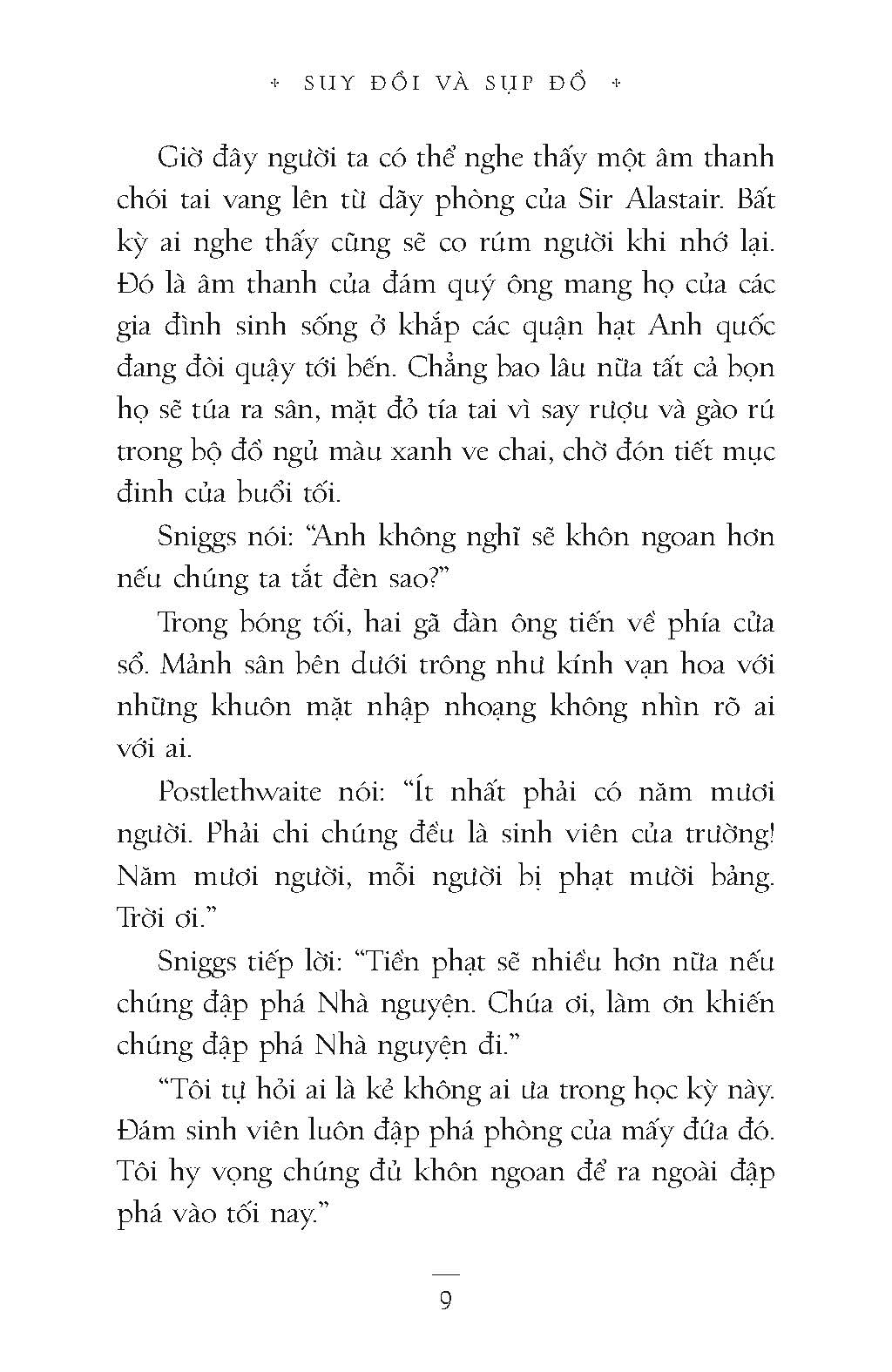 “Suy đồi và sụp đổ” là tiểu thuyết đầu tay và hài hước nhất của Evelyn Waugh, ngay từ khi ra mắt công chúng đã thu hút được đông đảo sự chú ý. Đây là câu chuyện về một chàng trai ngây thơ lạc bước vào thế giới thượng lưu đầy rối ren và suy đồi của những thập niên đầu thế kỷ hai mươi.