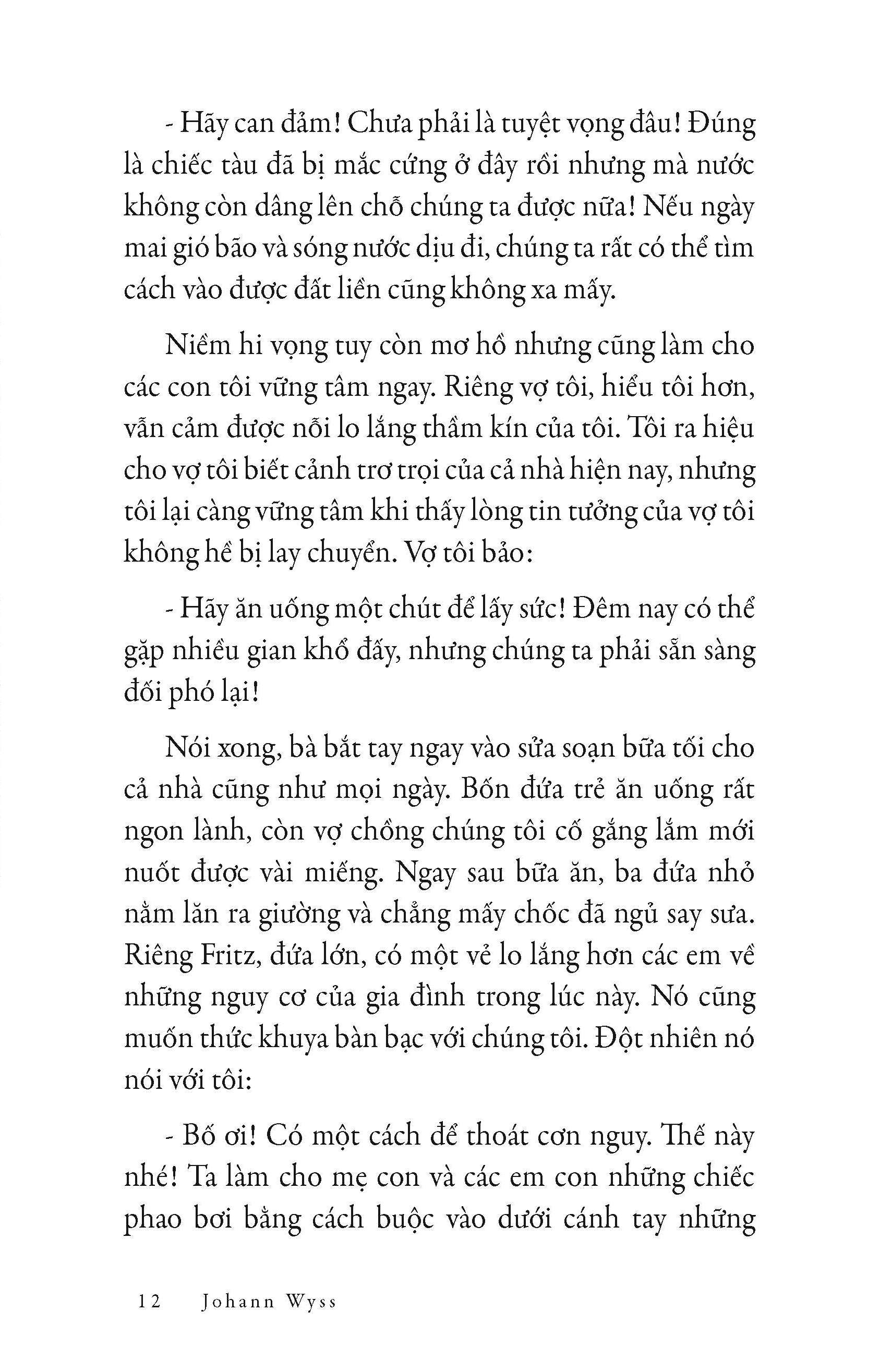Mua tại Tiktok“Robinson Crusoe luôn luôn là một cuốn sách hay và tốt, nhưng Robinson Thụy Sĩ có lẽ xứng đáng vị trí đứng đầu tất cả những tác phẩm tưởng tượng thích ứng vào việc dạy dỗ cho trẻ con và việc dạy bảo cho người lớn... Nếu tôi có được vinh dự tạo được đôi phần ảnh hưởng tới những cuộc bàn luận của Viện Hàn lâm nước Pháp, tôi sẽ đề nghị tặng giải thưởng hàng năm cho Robinson Thụy Sĩ và tìm cách phân phát không tác phẩm ấy về tất cả các trường học...”