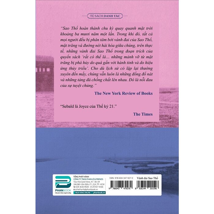 Vành Đai Sao Thổ Vành đai Sao Thổ (nguyên tác: Die Ringe des Saturn: Eine Englische Wallfahrt, ra mắt năm 1995) là danh tác thứ tư của tác giả W.G. Sebald do Phanbook chọn giới thiệu (các tác phẩm đã ấn hành trước đây: Ký ức lạc loài, Austerlitz - Một cái tên và Chóng mặt). W.G. Sebald là một trong những tác giả Đức quan trọng nhất trong thời hậu chiến.