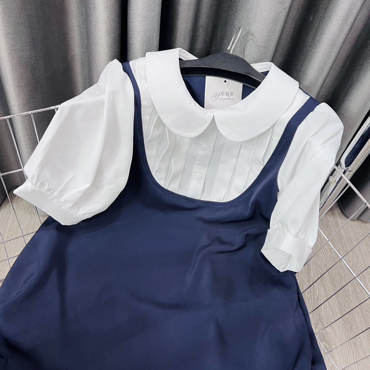 Váy bầu yếm liền thân phối cổ sơ mi đẹp, đầm yếm bầu công sở, MLEE SHOP