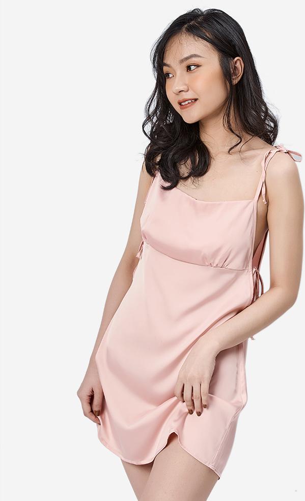 ✨Váy lụa Pink Stull trơn cột dây hồng pastel