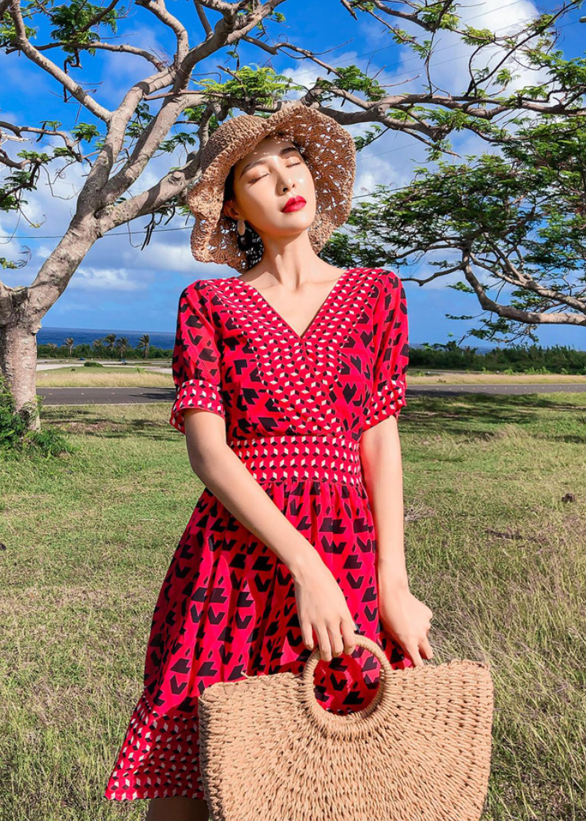 Màu đỏ này đẹp với kiểu váy xòe maxi dáng dài #thoitrangthuy #maydoonline