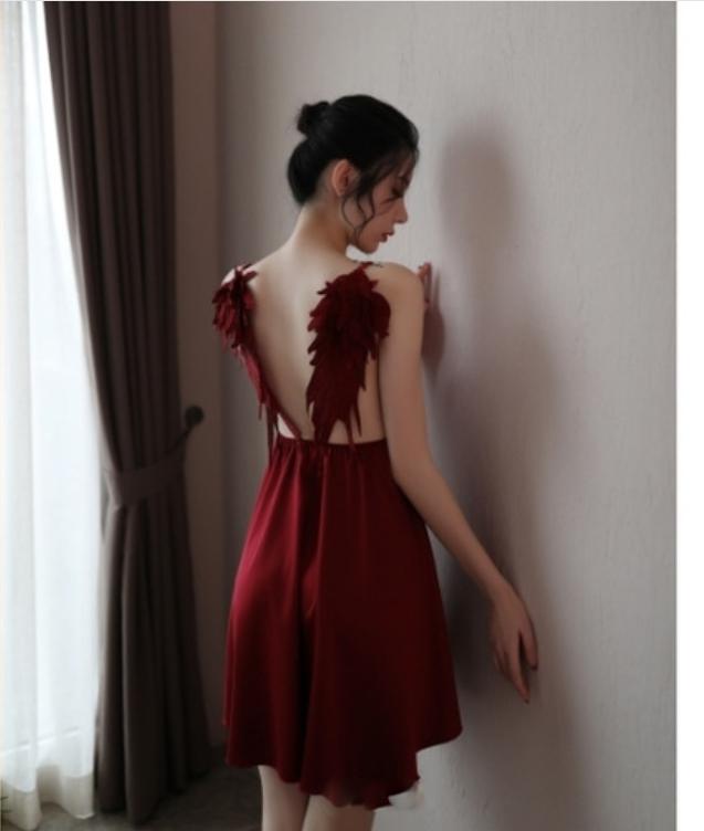 Voan mỏng trong mờ để lộ cơ thể sau lớp voan trong càng làm tăng thêm sự quyến rũ, phần ngực được tô điểm thêm lớp voan ngoài cách điệu cho chiếc váy thêm xinh xắn