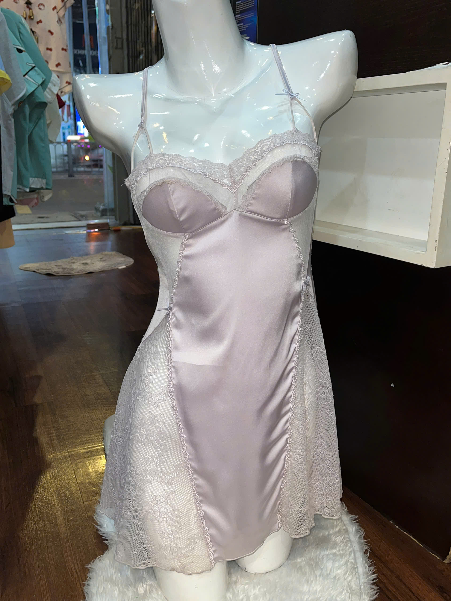 ✨Váy Ngủ D250 Lụa Quảng Châu Phối Ren Mút Lót Tai Thỏ Xinh Xắn