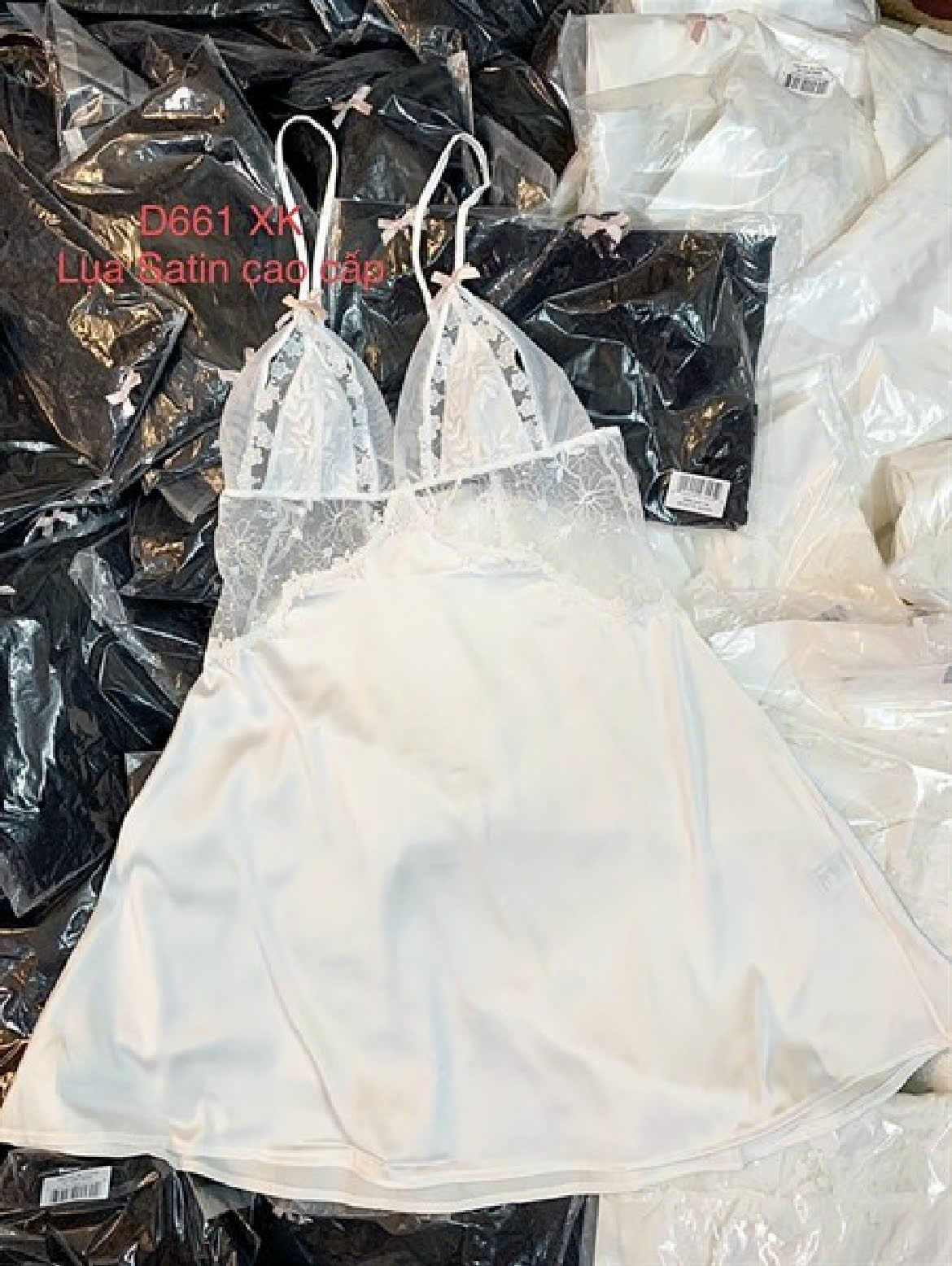 Mua tại TiktokThương hiệu: Sanny House Tên sản phẩm: Váy ngủ Chất liệu: lụa cao cấp mềm mịn, co giãn, thấm hút tốt Kiểu dáng: gợi cảm, trẻ trung, hiện đại Màu: trắng Size: dưới 56kg LƯU Ý: