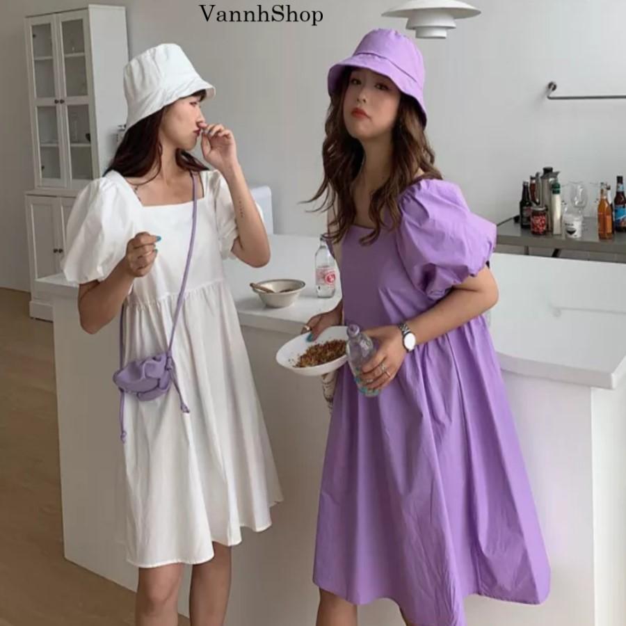 ✨Váy nữ Mùa Hè 2021 Mới - Đầm nữ dễ thương - Cổ vuông -Tay phồng -Chất đũi -VannhShop Ms 14A (tặng kèm khẩu trang vải)