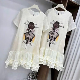 ✨Váy Ren Tơ 2 Lớp In Cô Gái Phối Chân Thô Bèo Tầng Kèm Tag Nơ