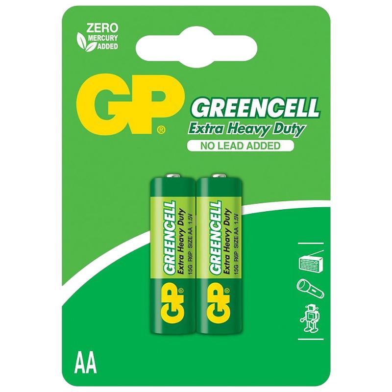 - Pin AA GP Greencell Extra Heavy Duty là dòng Pin than / Zinc-Carbon EXTRA Heavy Duty.