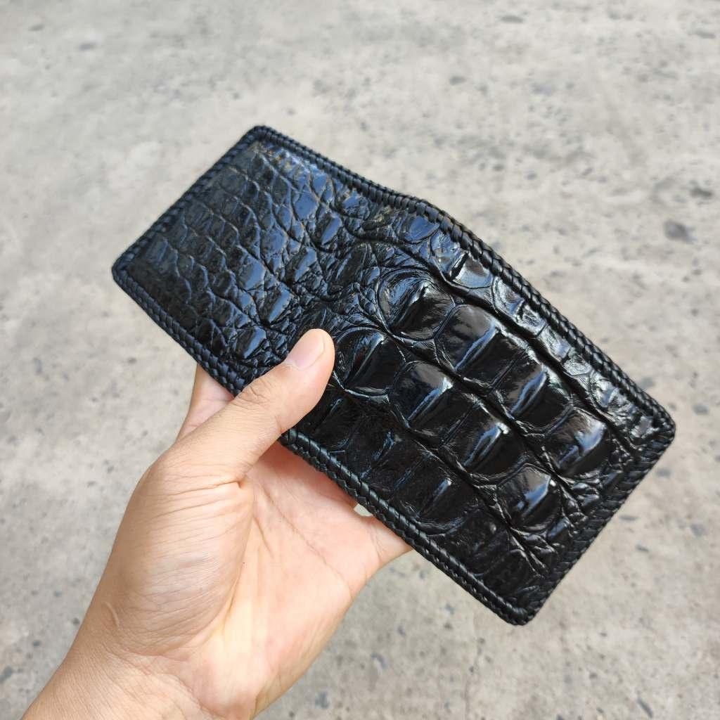 Mặt ngoài của ví làm từ phần gai lưng cá sấu chạy song song rất đẹp. Xung quanh ví được đan viền thủ công đẹp nổi bật và chắc chắn
