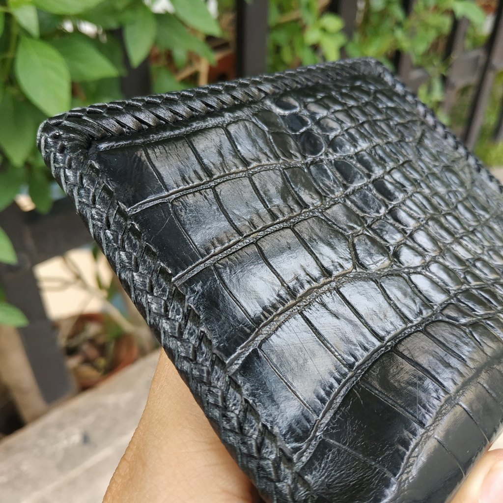 Ví Da Cá Sấu Thái Lan 2 Mặt Đan Viền Thủ Công #vidacasau #vida #bopdacasau