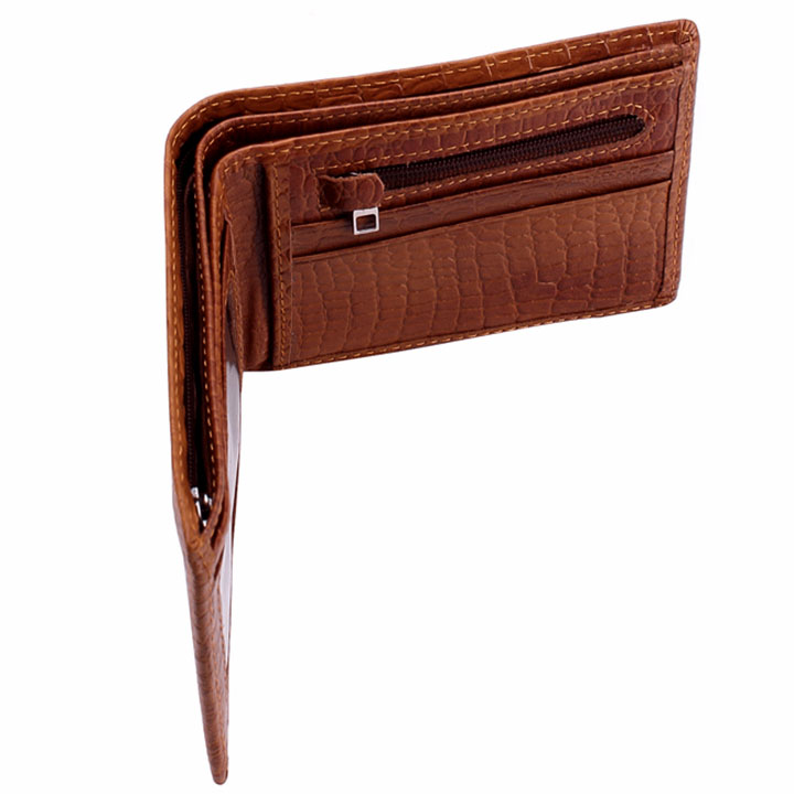 Ví/Bóp nam Huy Hoàng da bò vân cá sấu màu nâu 2112