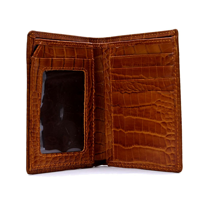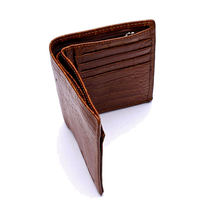 Ví/Bóp nam Huy Hoàng da bò vân cá sấu kiểu đứng màu nâu 2121