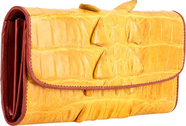 Ví/Bóp nữ da bò Huy Hoàng vân cá sấu lớn 3 gấp màu nâu đỏ 3169