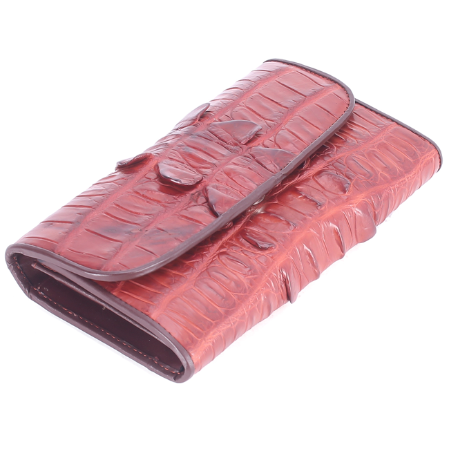 Ví da cá sấu cầm tay 2 ngăn khoá kéo | Ví cầm tay màu nâu đỏ