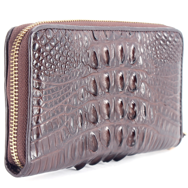 Ví da cá sấu cầm tay 2 ngăn khoá kéo | Ví cầm tay màu nâu đỏ