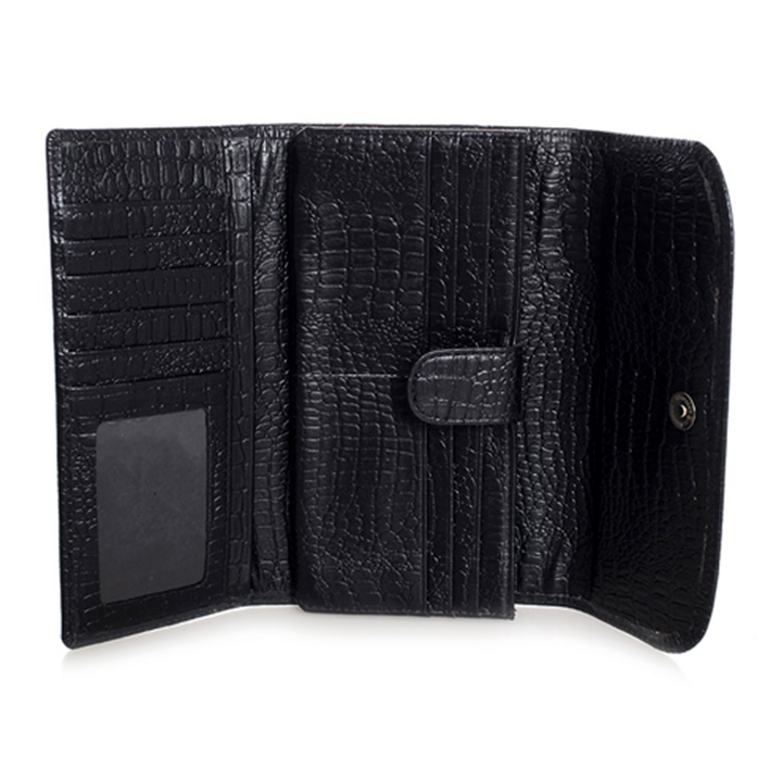 Ví/Bóp nữ vân cá sấu Huy Hoàng bấm nút màu đen 3109