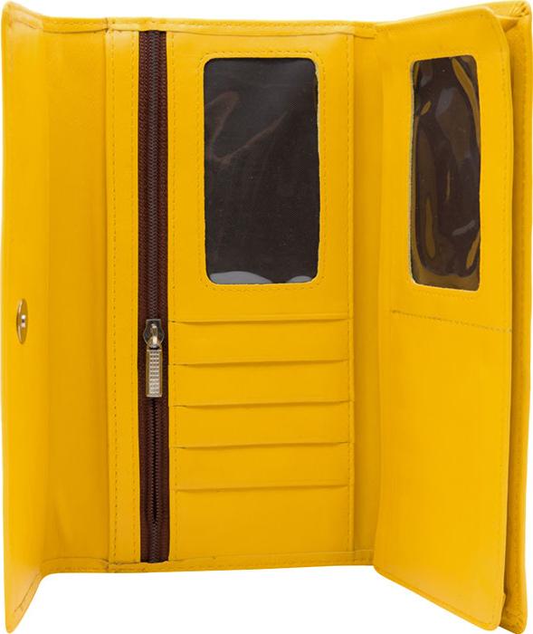 Ví/Bóp nữ da bò Huy Hoàng cao cấp 3 gấp màu vàng 3165