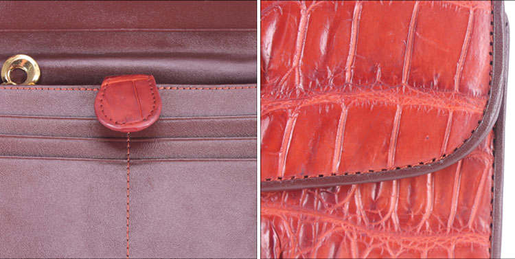 Ví/Bóp nữ da bò Huy Hoàng vân cá sấu lớn 3 gấp màu nâu đỏ 3169