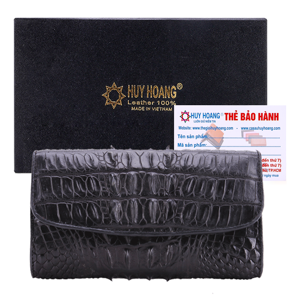 - Ví nữ Huy Hoàng được làm bằng chất liệu da cá sấu cao cấp tạo kiểu dáng lạ mắt, sang trọng.
