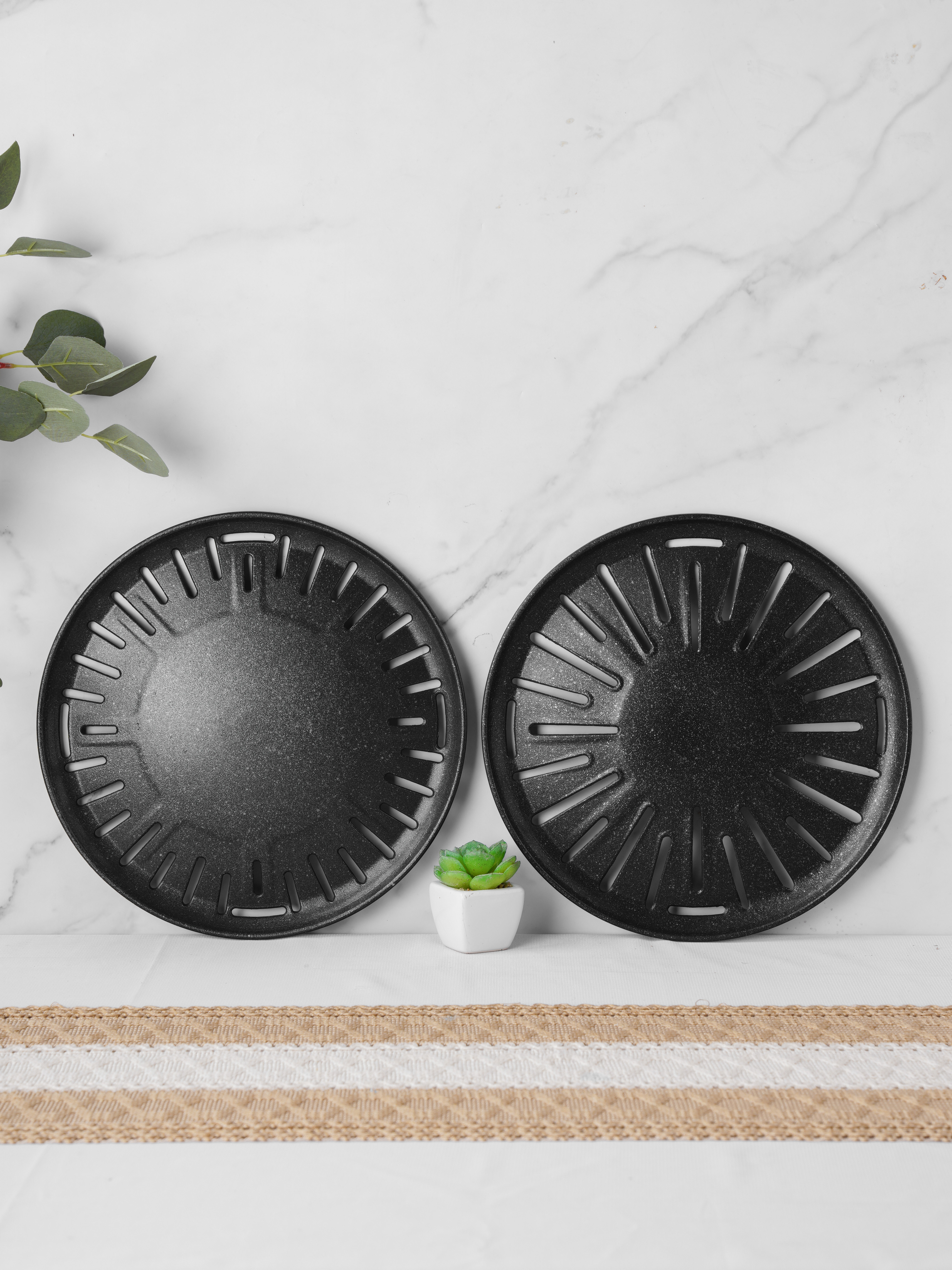 - Chất liệu: nhôm đúc nguyên khối - Sử dụng được cho tất cả các loại bếp gồm cả bếp từ - Đường kính 28cm - Khay nướng có vân đá gồm 5 lớp chống