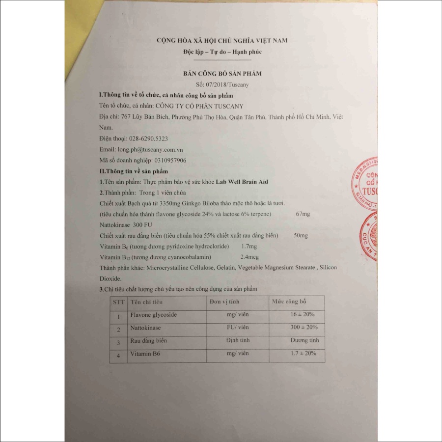 - Địa chỉ nhập khẩu: 767 Lũy Bán Bích, P.Phú Thọ Hòa, Q.Tân Phú, TP.HCM Liên Hệ: 0964.16.06.79 để được tư vấn �� Viên uống tăng cường trí nhớ Brain Aid – Labwell
