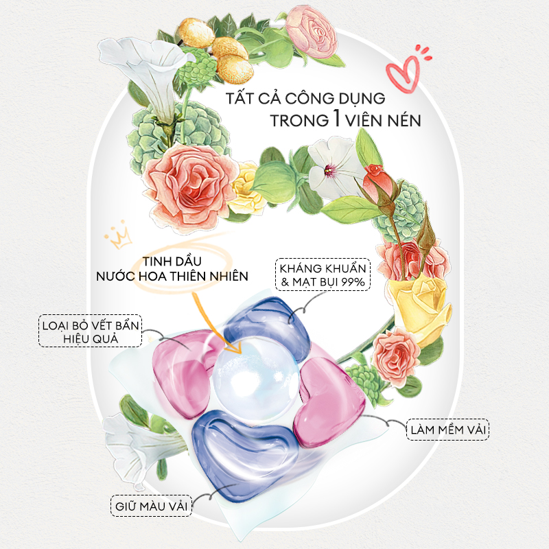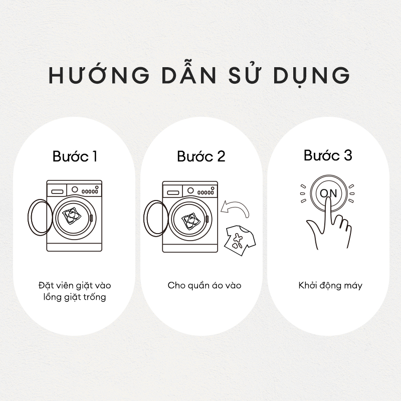 ƯU ĐIỂM NỔI BẬT Chỉ cần thả 1 viên vào lồng giặt, bạn sẽ trải nghiệm 4 lợi ích giặt giũ mà không cần xách nặng hay đo đạc: • Tiện Lợi Tối Đa: Thao