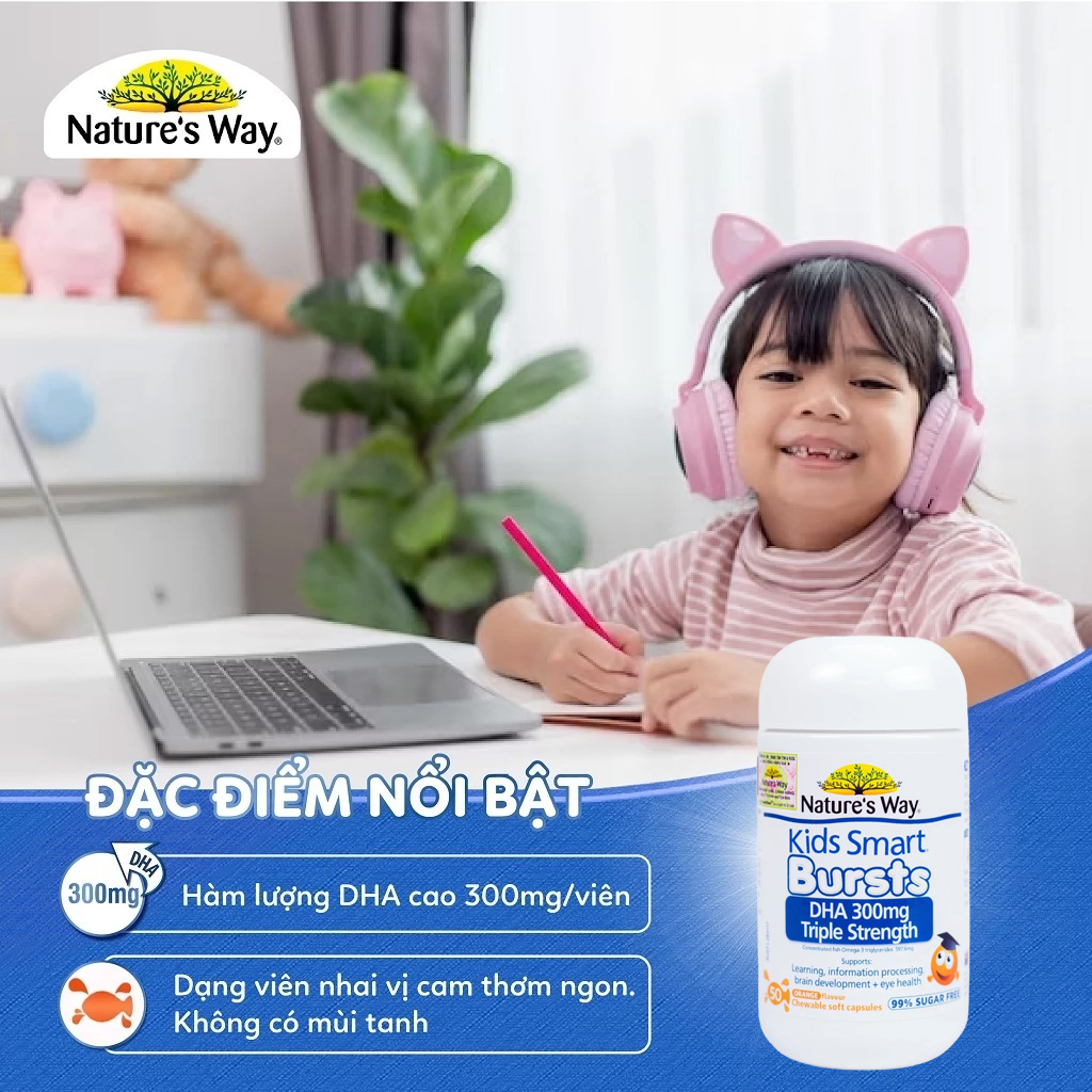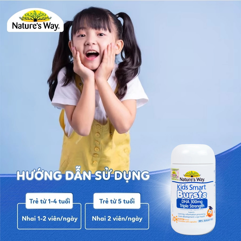 Nature’s Way Úc Kids Smart Bursts DHA 300mg Triple Strength 50 Viên - HÀNG ÚC 247