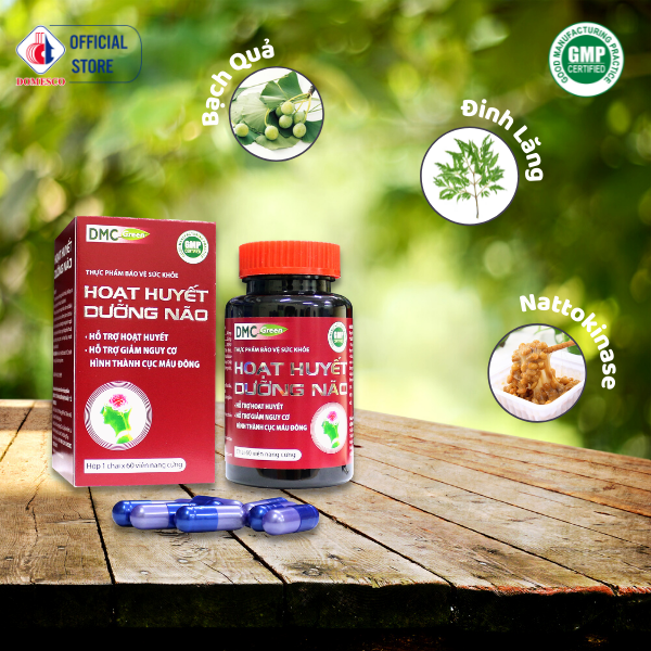 HOẠT HUYẾT DƯỠNG NÃO - NĂNG ĐỘNG - TĂNG CƯỜNG LƯU THÔNG TUẦN HOÀN NÃO Thành phần: Cao đinh lăng…….230mg Cao bạch quả……..10mg Công dụng: Hỗ trợ hoạt huyết, tăng cường lưu thông tuần hoàn