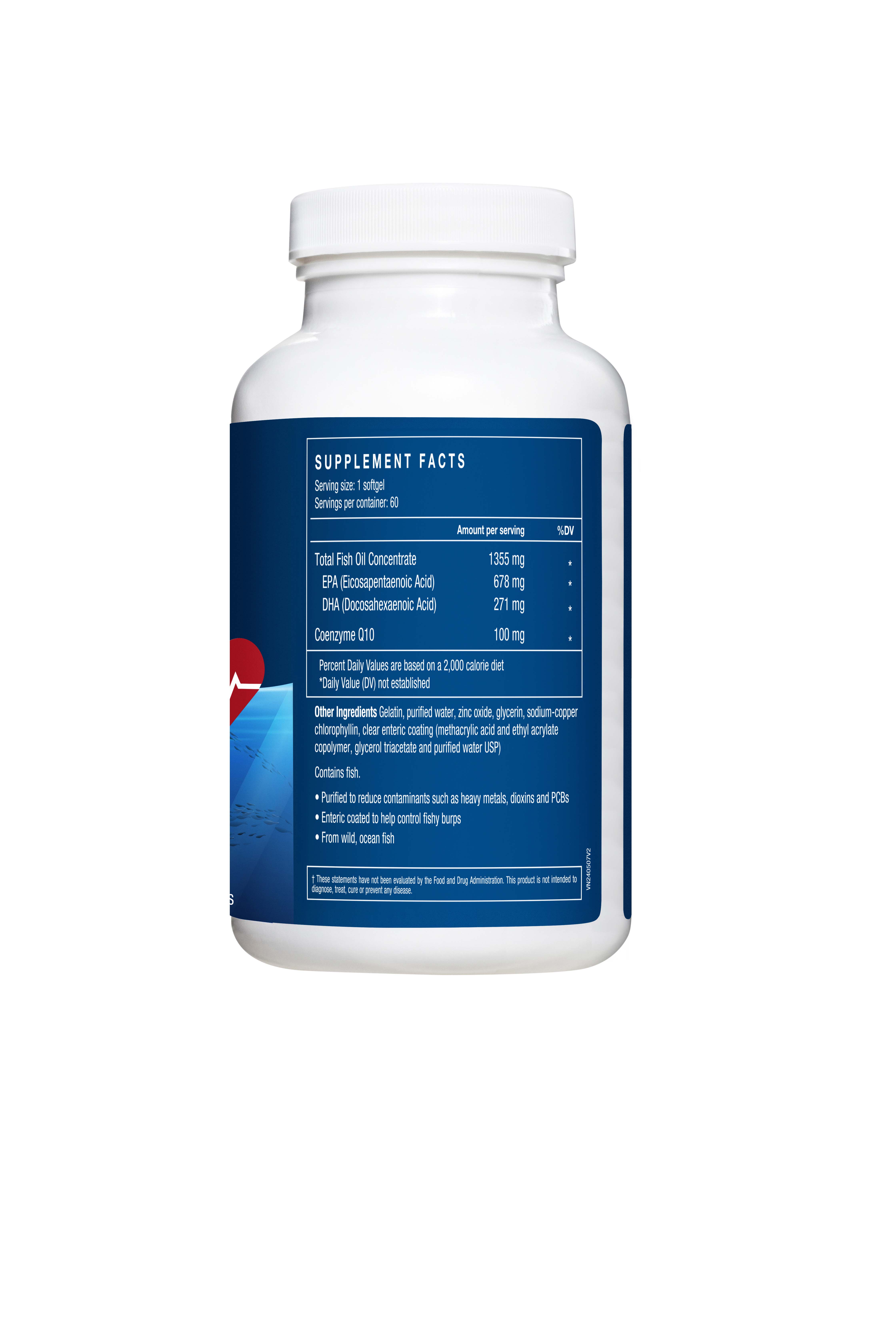 1355mg dầu cá tinh chế cung cấp 271mg DHA (Axit Docosahexaenoic) và 678mg EPA (Axit Eicosapentaenoic)