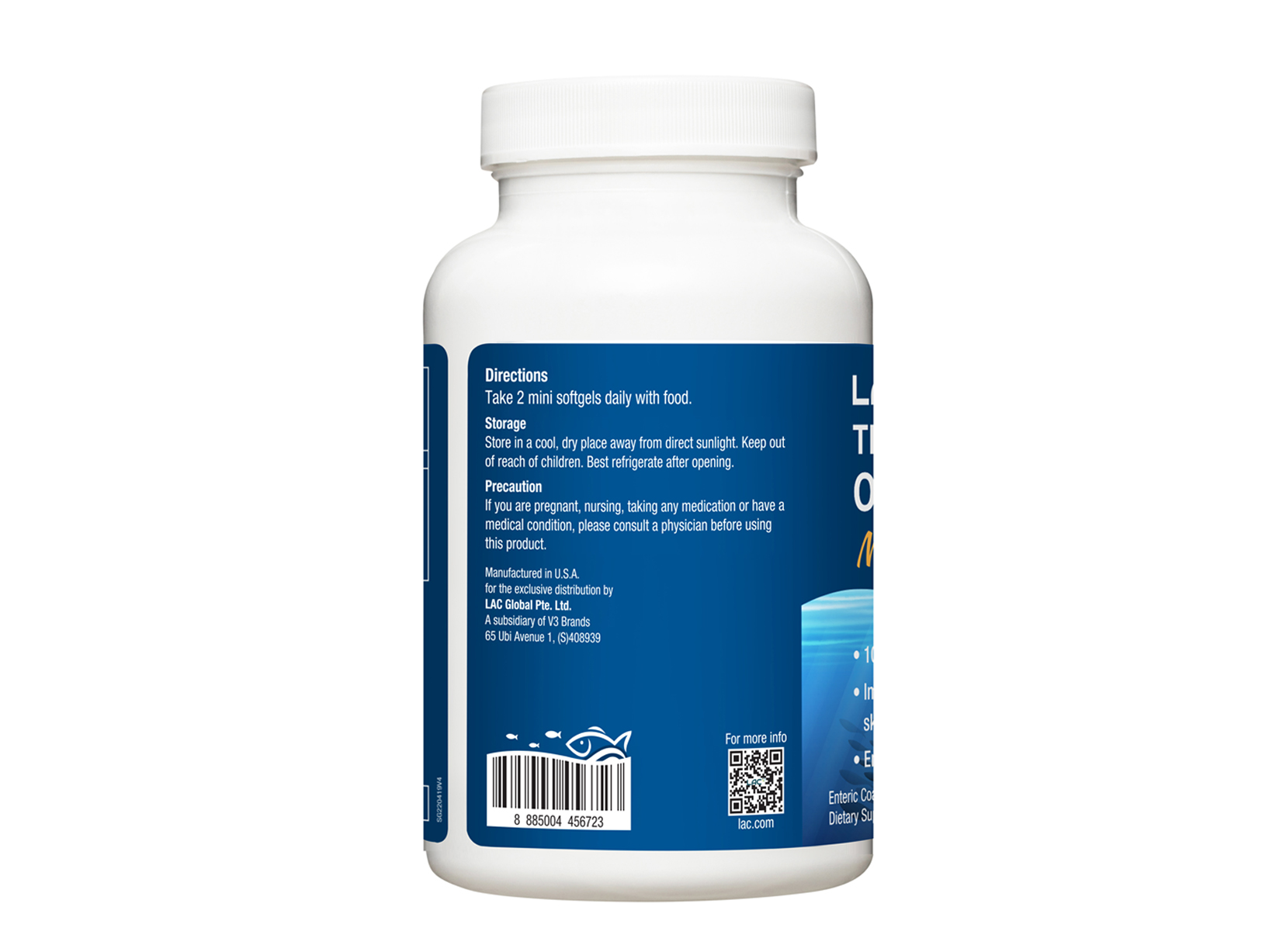 VIÊN UỐNG DẦU CÁ BỔ SUNG OMEGA HỖ TRỢ TIM MẠCH LAC TRIMAX OMEGA FISH OIL MINI (120 VIÊN) chứa hàm lượng axit béo Omega-3 gấp 3 lần so với dầu cá thông thường giúp hỗ trợ tim mạch, tăng cường chức năn...