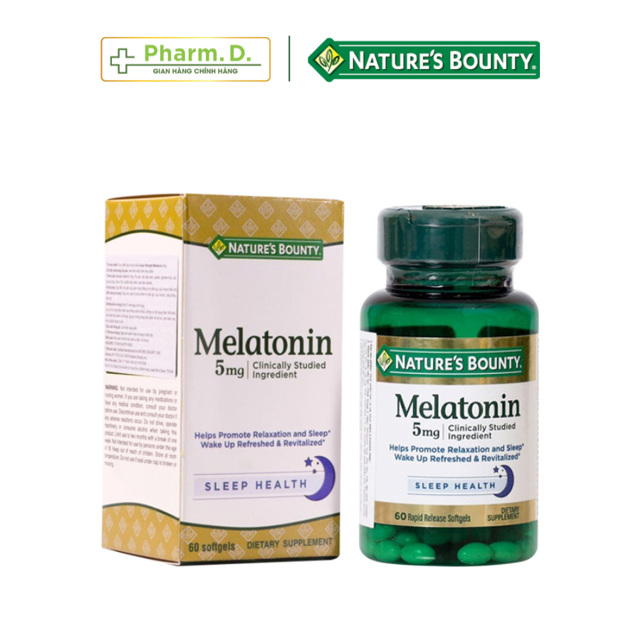 Mua tại TiktokViên Uống NATURE'S BOUNTY Melatonin 5mg Hỗ Trợ Điều Hòa Giấc Ngủ Nature's Bounty Melatonin 5mg cung cấp hoạt chất melatonin giúp điều hòa giấc ngủ, giảm căng thẳng do bị mất ngủ, suy nhược, căng thẳng thần kinh. Sản phẩm được nghiên cứu và sản xuất bởi Nature's Bounty, thương hiệu chăm sóc sức khỏe nổi tiếng tại Mỹ. Thương hiệu: Nature's Bounty Xuất xứ: Mỹ Hạn sử dụng: Xem trên bao bì sản phẩm Quy cách đóng gói: Hộp 60 Viên THÀNH PHẦN MELATONIN CÓ TRONG 1 VIÊN:
