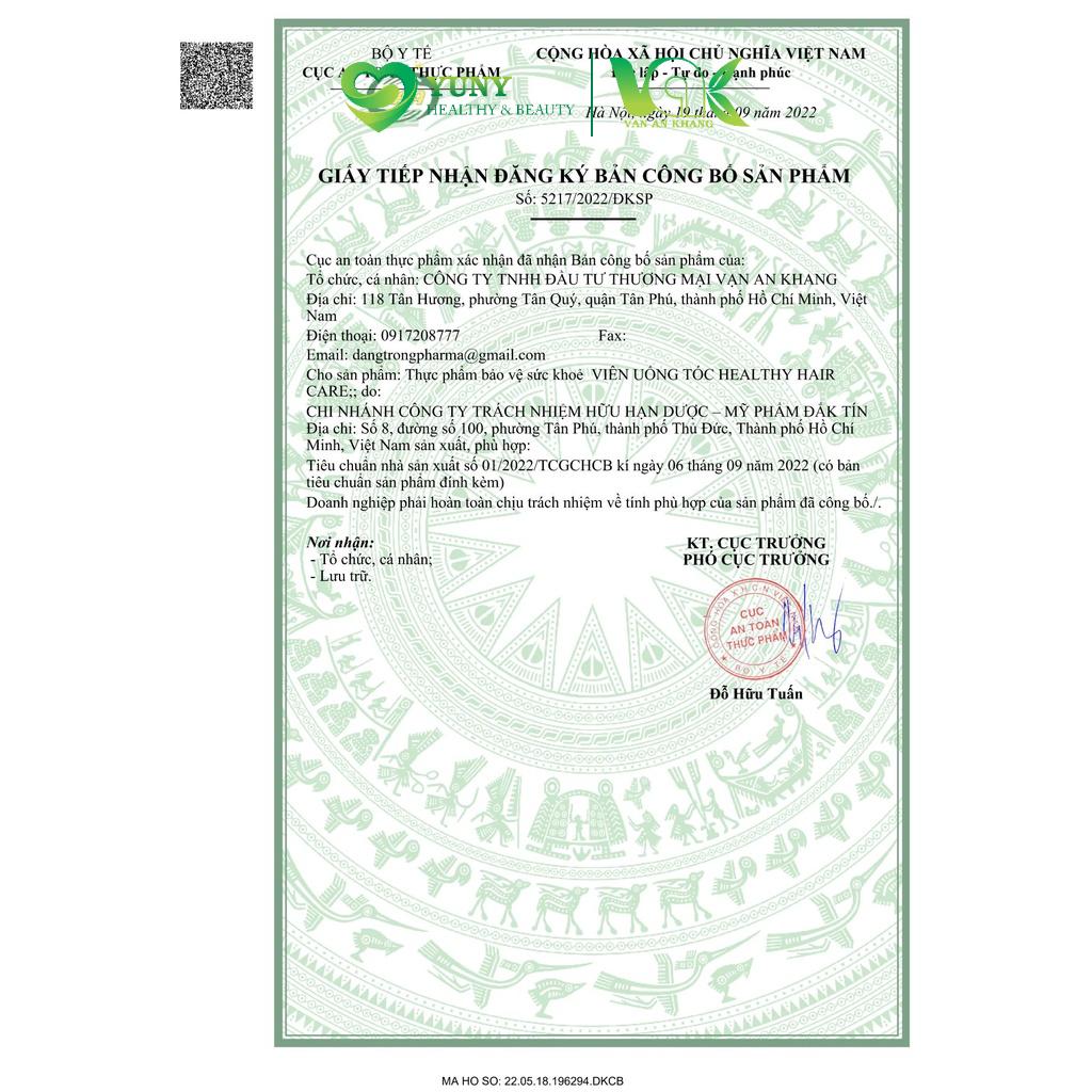 Mua tại TiktokViên Uống Tóc Healthy Hair Care Thành phần Trong một viên nan có chứa: 160mg cao hỗn hợp thảo mộc (tỷ lệ cao thảo mộc =1:10):