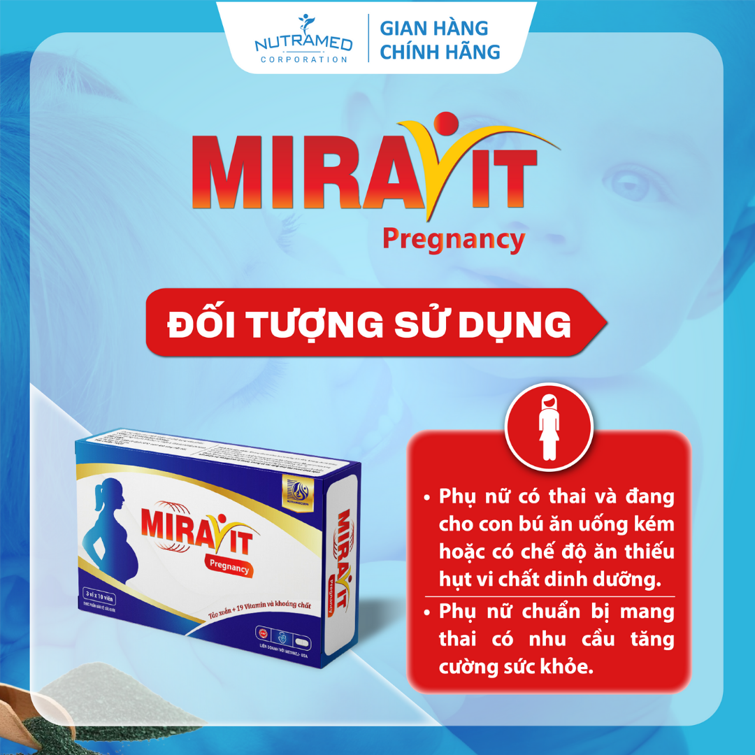 MIRAVIT PREGNANCY - Giải pháp giúp bổ sung vitamin và khoáng chất, tăng cường sức khỏe và nâng cao sức đề kháng THÀNH PHẦN ️ Magie (dạng Magie hydroxyd); L-Lysine hydrochloride; Vitamin C (Acid