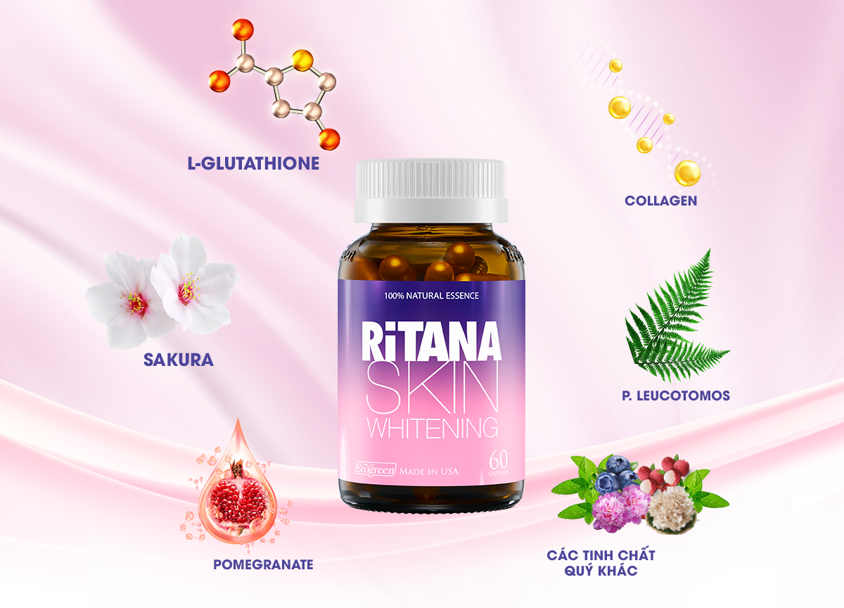 Công thức độc đáo của viên uống trắng da RiTANA chính là sự kết hợp những tính năng làm đẹp ưu việt từ các tinh chất thiên nhiên quý tác động đến tế bào giúp hỗ trợ: