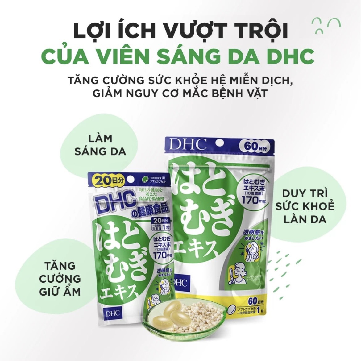 Viên uống trắng da DHC Nhật Bản Adlay Extract 30 ngày - 30 viên GIỚI THIỆU VIÊN TRẮNG DA DHC: - Ý dĩ còn có tên gọi khác là cườm thảo, là một loại thực
