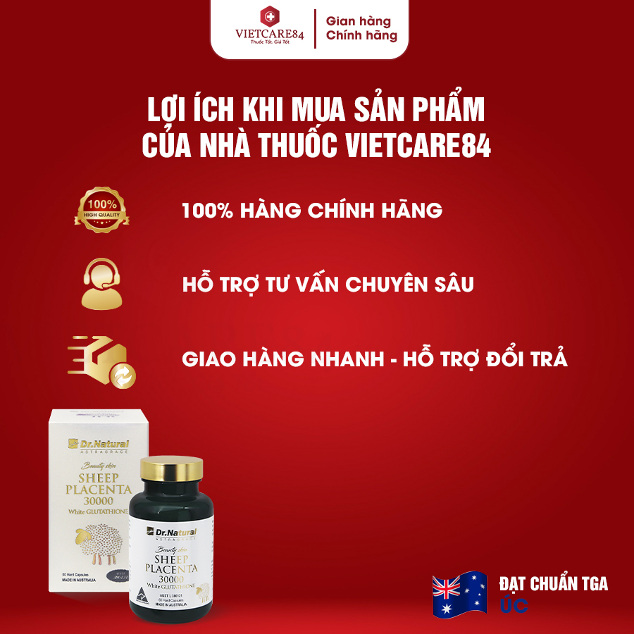 THỰC PHẨM BẢO VỆ SỨC KHỎE Beauty skin SHEEP PLACENTA 30000 White Glutathione Sản xuất tại Australia Beauty skin Sheep Placenta 30000 White Glutathion là công thức chuyên biệt hỗ trợ da sáng, khoẻ
