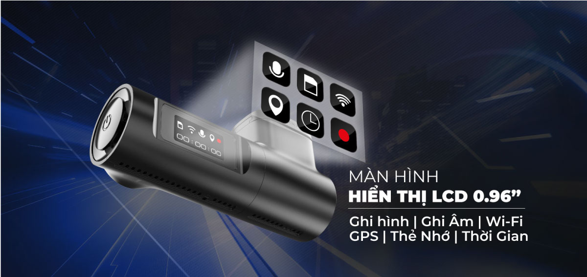 Độ phân giải video : FullHD 1080P Tích hợp màn hình Android Ống kính : Camera trước 150° Ghi hình vòng lặp : Có Wifi : Có GPS : Có Công nghệ hình ảnh giảm