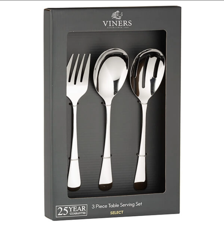 Bộ muỗng nĩa Select 3 món được làm từ thép không gỉ 18/0 bền bỉ. Thiết kế tay cầm hình giọt nước cổ điển thích hợp để sử dụng hằng ngày hoặc trong các bữa