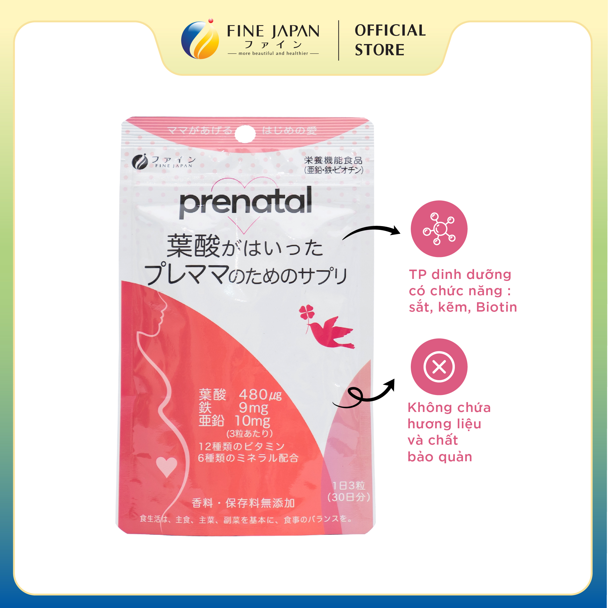 ► Vitamin tổng hợp cho bà bầu Prenatal FINE JAPAN bổ sung 12 Vitamin & 6 khoáng chất gói 90 Viên (30 ngày)