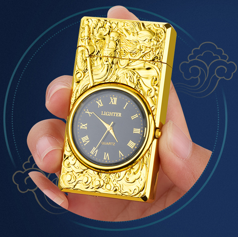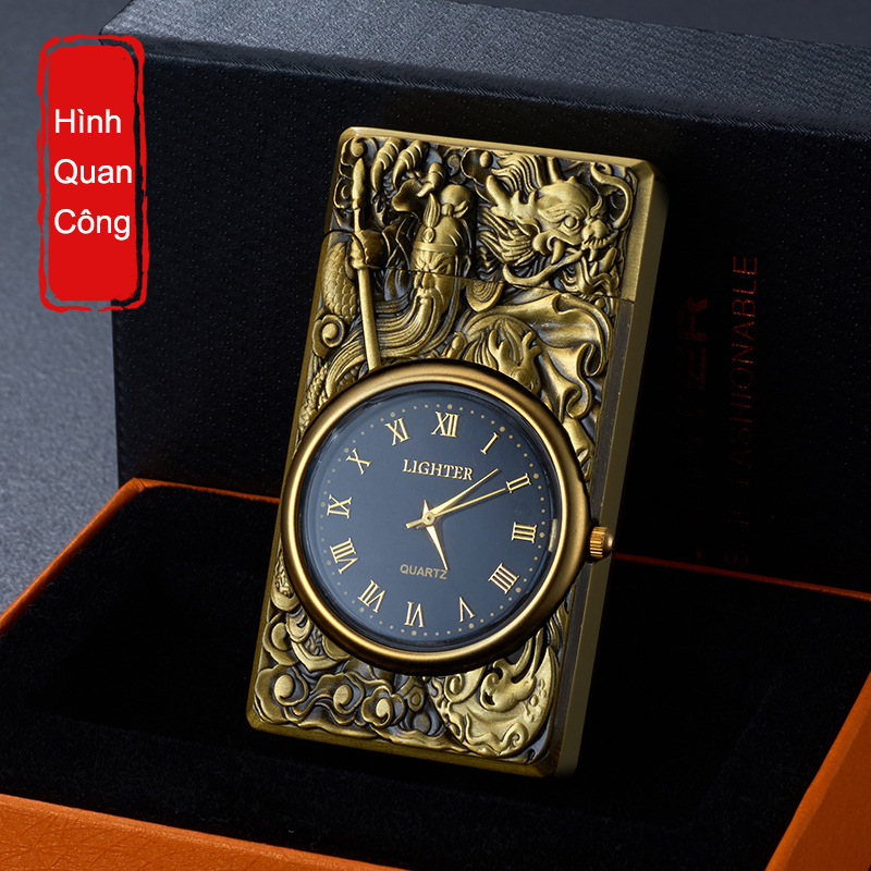 Bật Lửa Hộp Quẹt Khò Gas Kiêm Đồng Hồ Cầm Tay Phát Đèn Led In Nổi Hình rồng