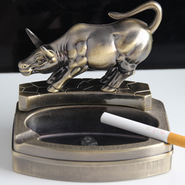 ✨Vỏ Hột Quẹt Bật Lửa Kiêm Gạt Tàn 2 Chức Năng Hình Con Trâu DH-8868 Màu Vàng Đồng Loại To
